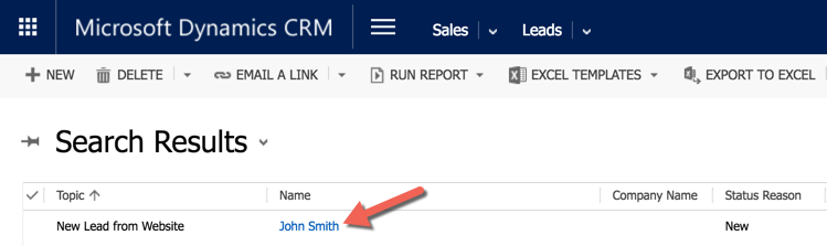 - Once logged-in, navigate to the entity (lead/contact) that contains the lookup field you would like to map. For example Sales > Leads.